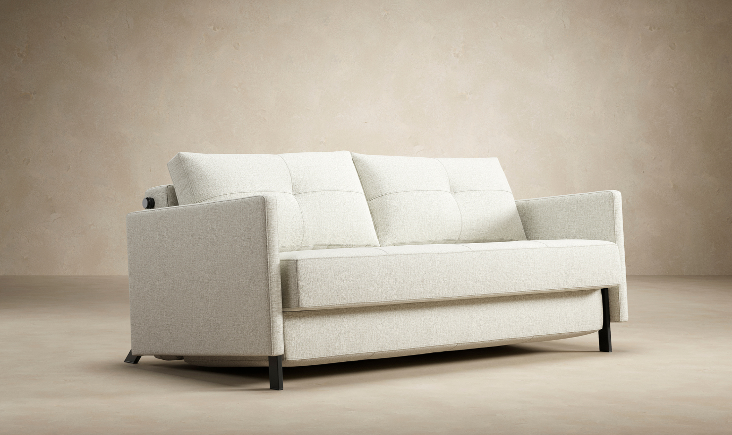 The Innovation Living Malloy 2-Seater Fabric Sofa Bed with Ottoman is thoughtfully crafted for anyone seeking both functionality and comfort in smaller living spaces. Featuring deep seating, soft fabric upholstery, and generously cushioned backs, the Malloy invites relaxed everyday lounging. Its armrests are designed not only for softness but also with a subtle flexibility that enhances comfort when reclining or leaning. Hidden behind the back cushions, a discreet neck pillow provides extra support for improved posture during long sitting sessions. Whether you’re reading, entertaining, or simply relaxing, the Malloy adapts with ease.
