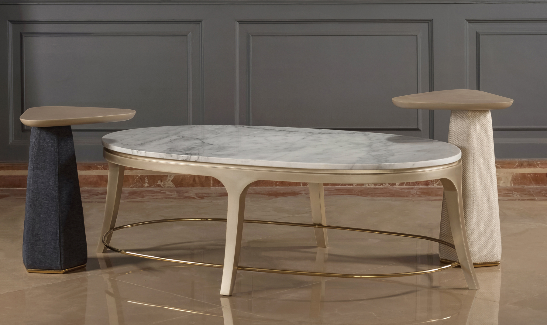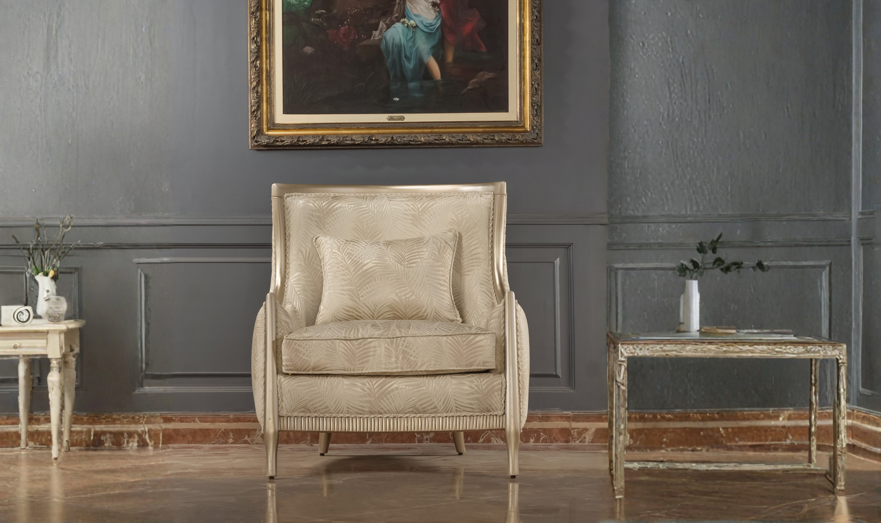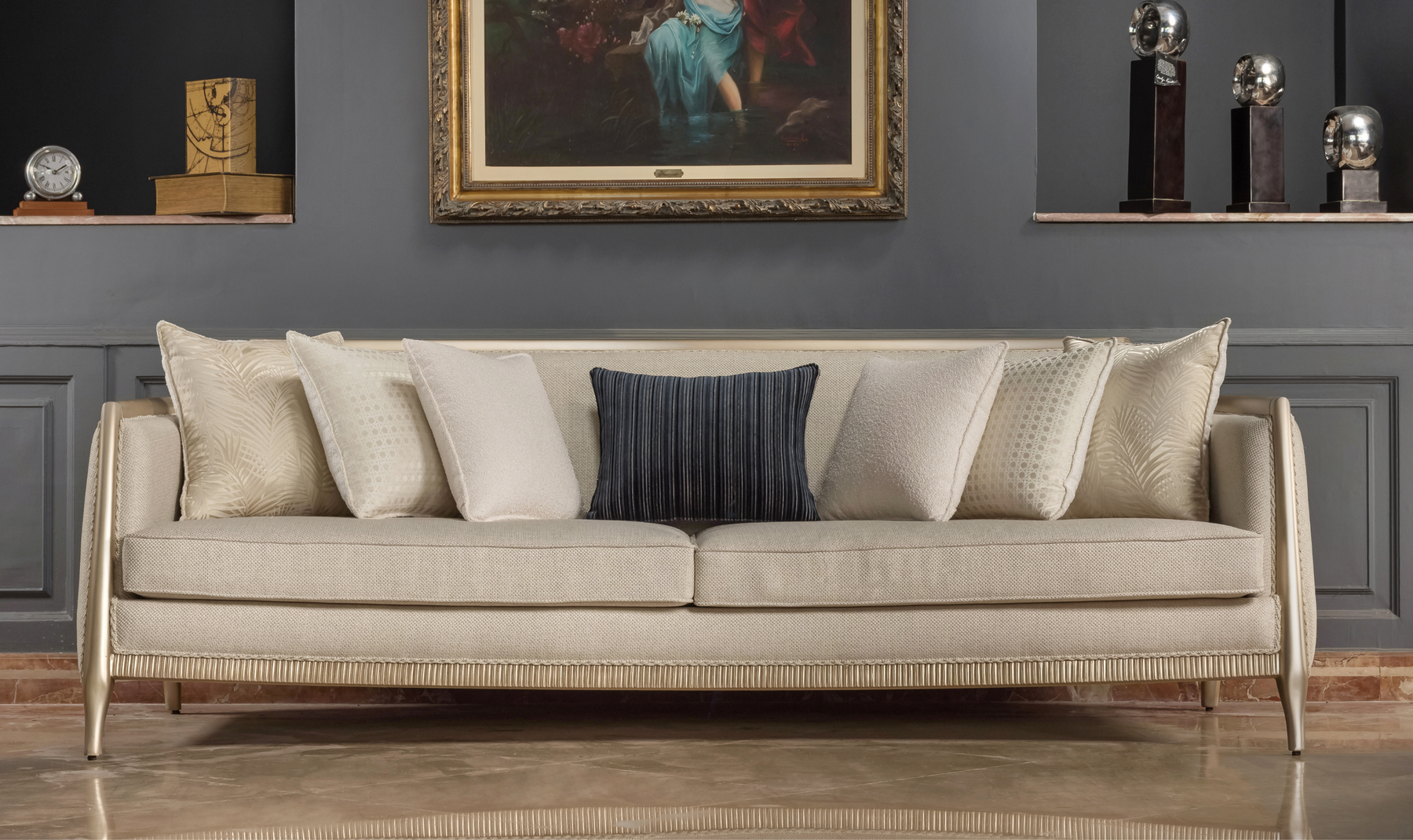 Bring refined comfort and contemporary elegance into your home with the Klaussner California Mastercrafted Living Room Set. Designed with clean lines and a soft, sophisticated palette, this collection blends modern luxury with artisan craftsmanship. The set includes a generously sized sofa, loveseat, two accent chairs, a stylish banquette, and coordinating tables-each piece thoughtfully designed to create a cohesive and inviting living space. Upholstered in premium fabric with plush cushioning, the seating offers exceptional comfort while maintaining a tailored, upscale look. Subtle metallic accents and sculpted legs add a touch of understated glamour.