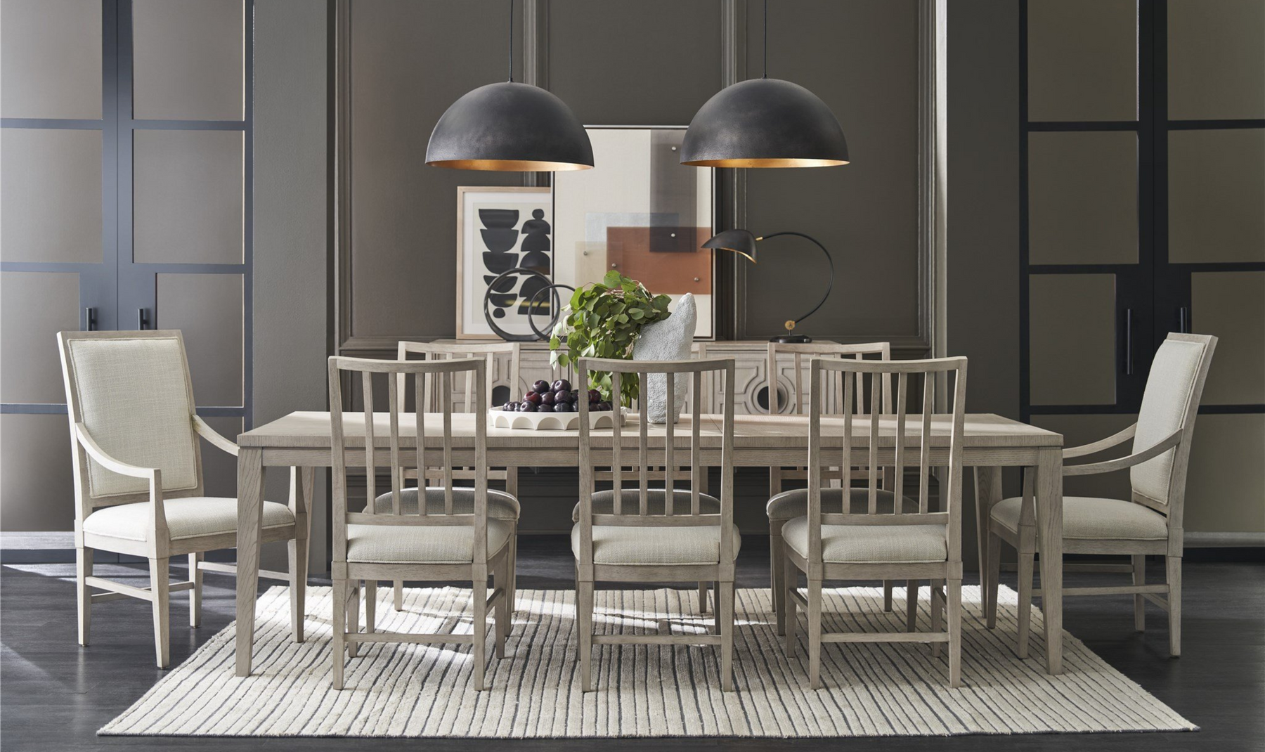 The Universal Furniture Coalesce Side Chair brings a quiet sophistication to any dining or seating space, blending classic craftsmanship with a fresh, modern silhouette. The chair features a curved, open back framed by slim vertical rods that give it a light, airy presence without compromising on support. Its solid wood construction in a muted Rolling Fog finish adds warmth and depth, while clean lines and subtle detailing reflect a design that’s both timeless and current.
