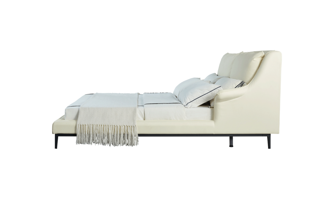 The Adio King Size Bed features a stunning white lacquer finish and a minimalistic design, making it a perfect fit for modern interiors. The high-gloss frame is complemented by a tufted, cushioned headboard, adding both style and comfort. Crafted from premium materials, the bed promises durability and a sleek aesthetic that pairs well with any décor.