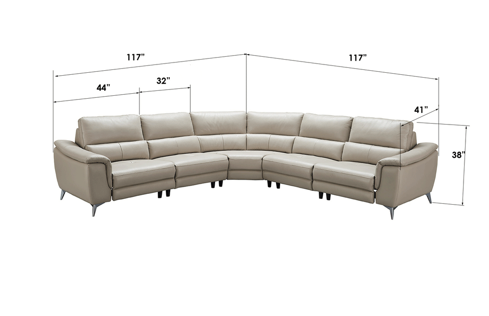 ESF Italia Amen L-Shaped Taupe Leather Sectional Sofa with Recliners