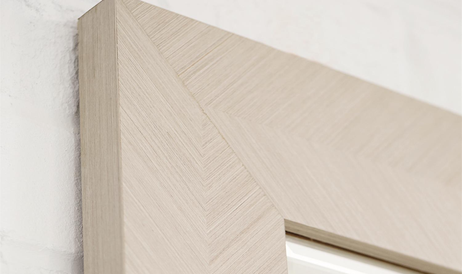 Take a look at this chic and versatile wood-framed Mirrors are designed not just to be functional but also to boost the overall space. Crafted with a combination of poplar solids and engineered faux anigre veneer wood, the frame looks sophisticated and durable. The mirror's sleek design is complemented by 1" beveled mirrored glass, which is glass that has been cut and polished with a beveled edge.