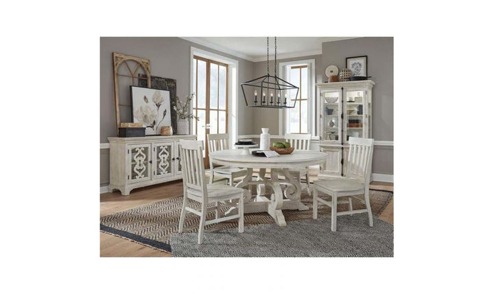Stylish from every angle, the Bronwyn dining collection is a designer favorite. Its signature style is sure to elevate the appeal of any dining space. Featured in an cream finish accented by Antique Brass hardware with Pewter overlay, Bronwyn delivers true design versatility. Offering an inspired blend of comfort and style, Bronwyn dining furnishings are the ultimate choice for creating a space ideal for relaxing dinners, leisurely conversations and satisfying celebrations.