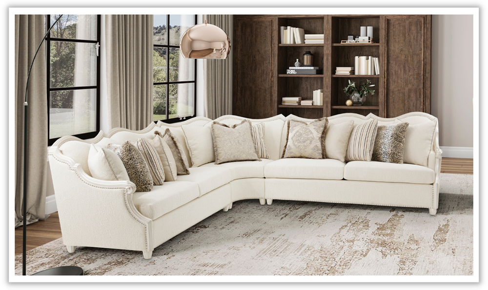 The sectional's body, back, and cushions are all fully upholstered for comfort and style. Because the cushions are encased, they are guaranteed to last and hold their shape over time. Pillows with feathers add another level of luxurious luxury, beckoning you to unwind. The sectional's classic beauty is enhanced by the nailhead finish, which lends a sense of classical craftsmanship.