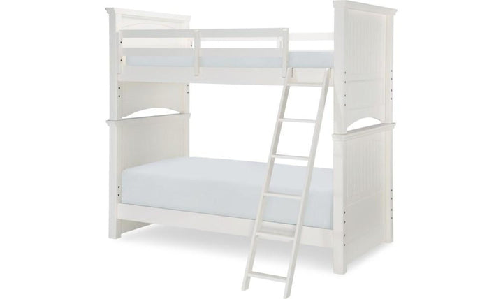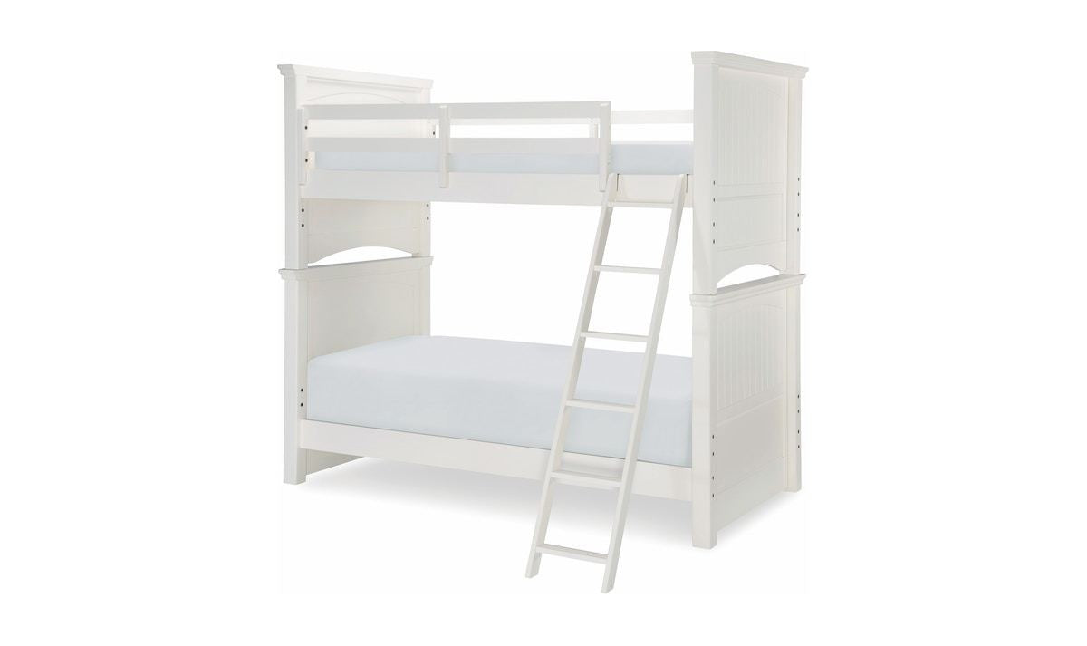 "Create a bright and welcoming atmosphere with the Summerset complete twin over twin bunk bed. A slightly distressed ivory finish provides an open canvas for any room’s bed style, accessories, or color. The complete twin over twin bunk bed guarantees exciting sleepovers and late-night chats. Works with various room layouts, as the ladder can be placed on either side and at either end of the bed. The bunk bed can be also assembled as two twin beds, allowing for flexible versatility. Add the 9300 Underbed Storage Drawer to maximize storage space, or the 9500 Trundle/Storage Drawer for even more sleeping options. From youth rooms to guest bedrooms, Summerset is sure to fit your needs. CA CARB P2 Compliant.Dimension: 78Hx84Wx71D