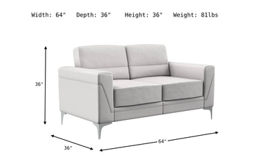 Transitional appeal and comfortable design collide to create this plush loveseat by Global Furniture USA. This loveseat is offered in a soothing light grey with PVC material which makes this chair versatile and easy fit for many room décor settings. Features include square style armrest, stylish metal legs, and completed with a simplistic and transitional style. Additional features include lower lumber cushion support, and convenient under zipper storage for the legs. To create an attractive and eye-catching focal point for your living room without sacrificing comfort, choose this loveseat for the ultimate in superior home furnishings.
