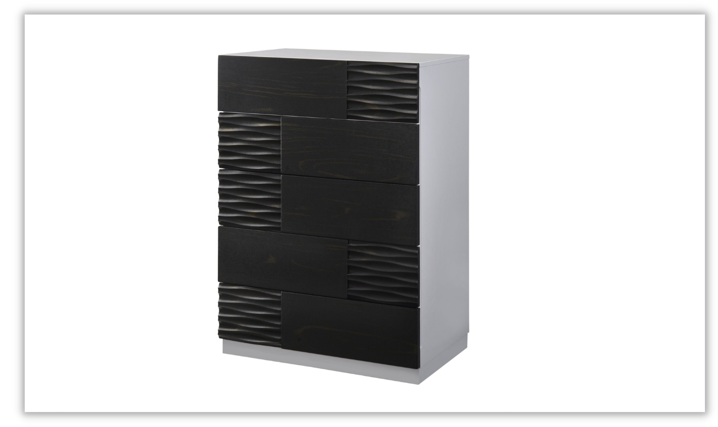 Jennifer Italia Globo 5 Drawer Wooden Chest in Gray and Black