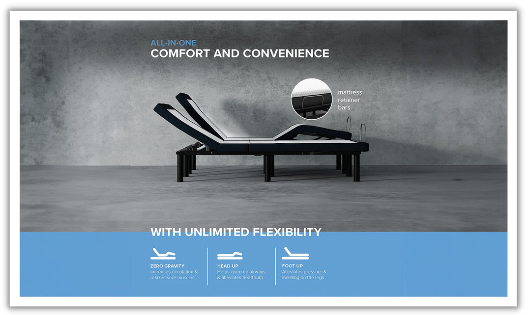 - Fast and Easy Setup: Set up the adjustable bed base quickly and easily.