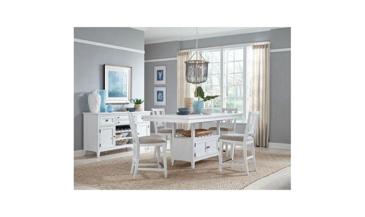 Boasting timeless design influences and impeccably crafted functionality, the dining furniture in Heron Cove is second to none. Its fresh cottage inspired look is equally suited for casual dinners or entertaining a crowd. You will love the easygoing design versatility of Heron Cove is Chalk White finish and Aged Pewter accents. This classic collection offers raised beaded trim, framed panel elements and straight, shaker inspired legs.