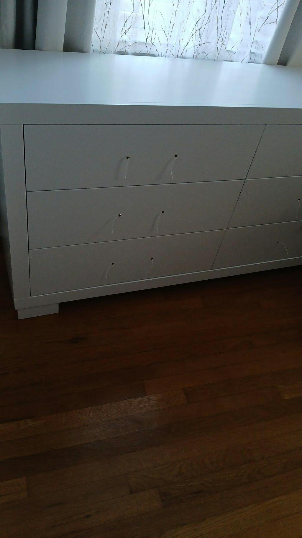 With clean lines and a modern design, this contemporary dresser invites elegant functionality into a master en suite. With six spacious drawers, it provides plenty of space for convenient storage and organization. Its upper drawers are lined with soft felt, protecting your most delicate pieces. A simple, white finish and smooth, silver handles add subtle glamour to its sleek silhouette. Constructed from solid wood, this dresser is a durable delight that is sure to enhance any bedroom.