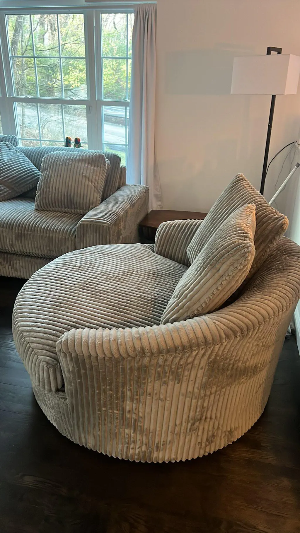 Crafted with meticulous attention to detail, the Lindyn chair boasts an irresistibly plush cord upholstery that immediately catches the eye. The oversized swivel accent chair is a testament to on-trend aesthetics, providing a luxurious focal point for any room. The remarkable ivory hue of the fabric adds an air of elegance, effortlessly harmonizing with modern color palettes.