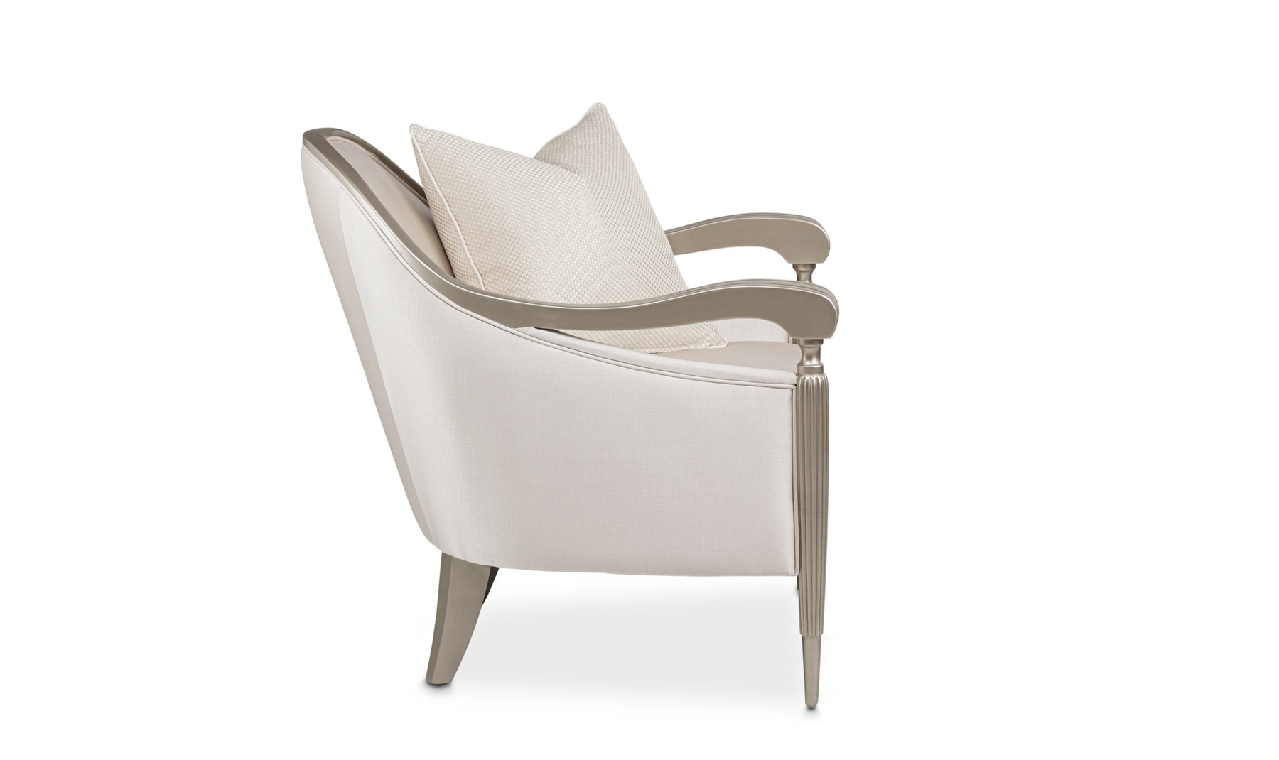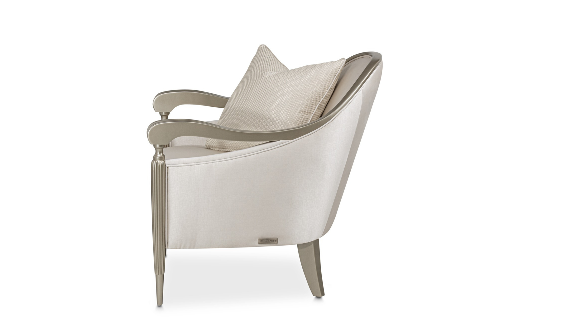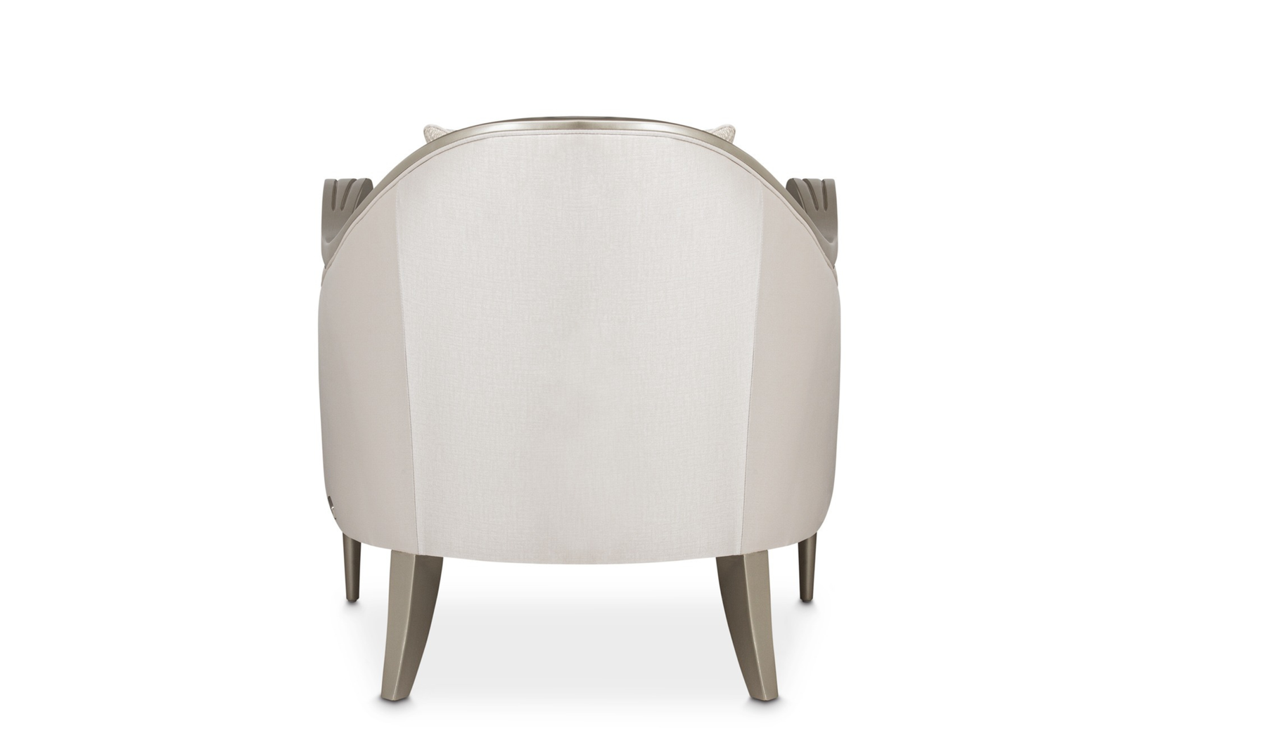 The Aico Furniture London Place Upholstered Accent Chair offers a refined blend of smooth texture and subtle shine, making it an easy addition to a contemporary or Art Deco–inspired space. Its faux-silk upholstery creates a soft, sleek surface that adds visual interest without overwhelming the room. The gentle champagne tone gives the chair a calm, polished look that works well in living rooms, reading corners, or bedrooms.