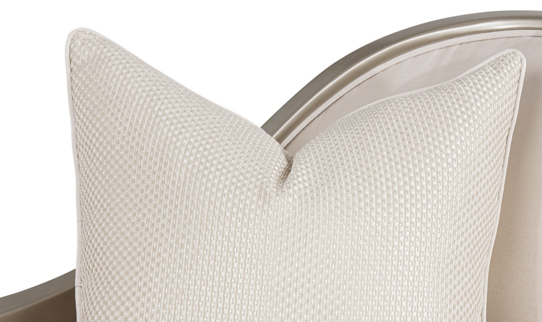 A sturdy wood frame finished in a platinum tone supports the chair, giving it a balanced combination of comfort and durability. The included accent pillow adds a touch of softness and helps shape the chair for relaxed seating. Whether used on its own or paired with coordinating décor, this piece brings a composed and modern presence to your home.