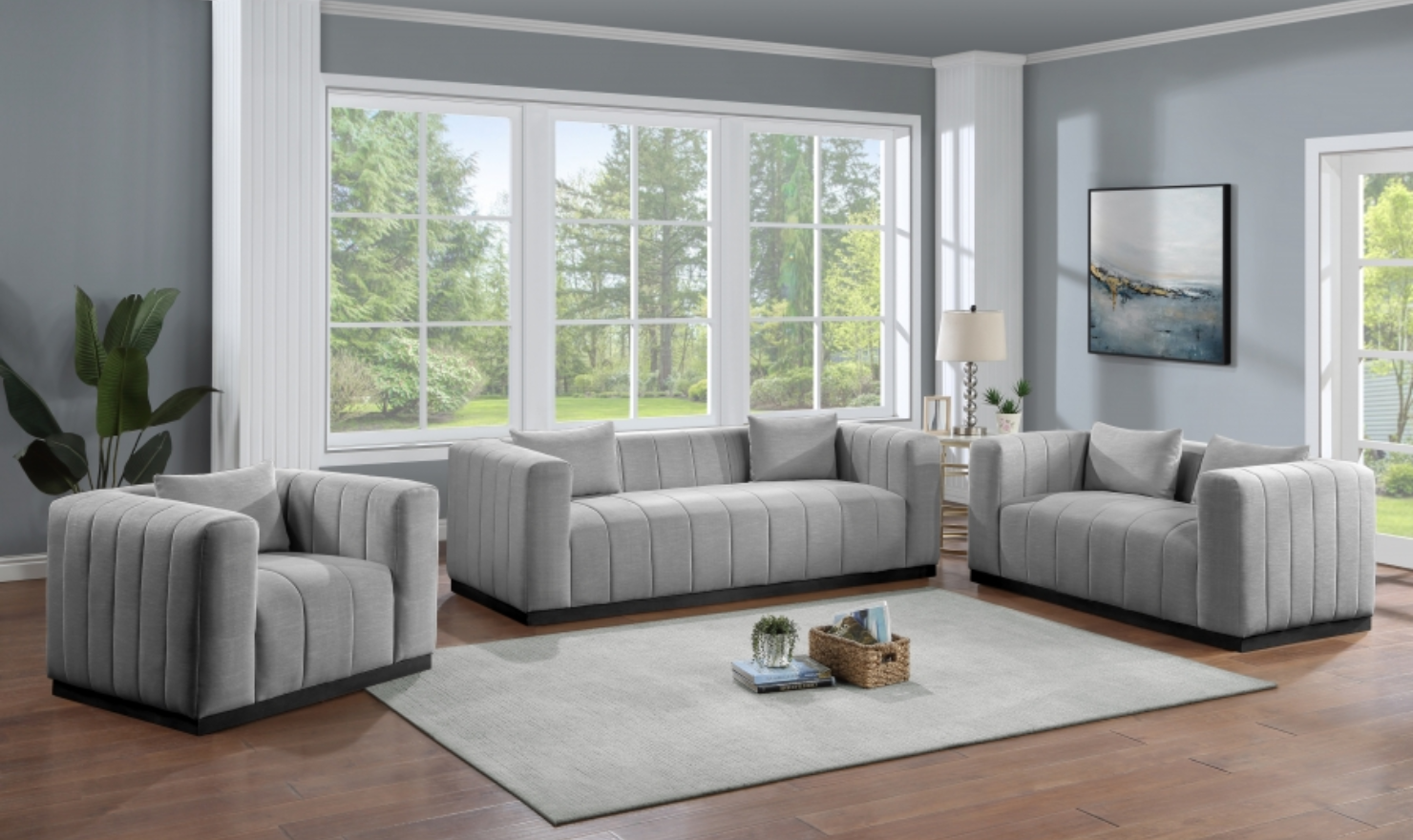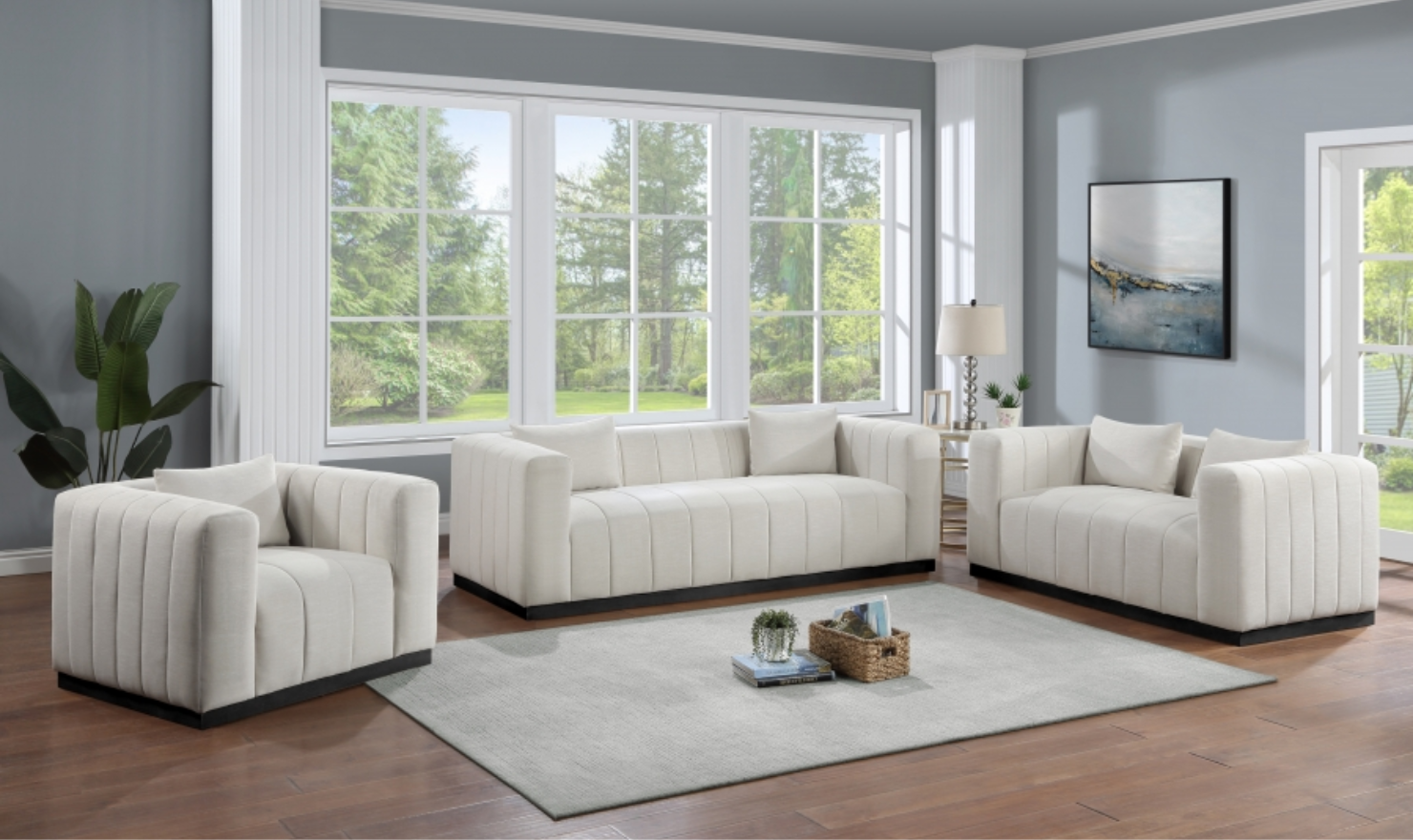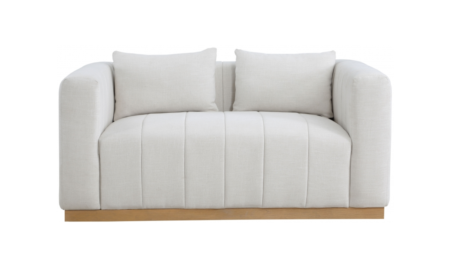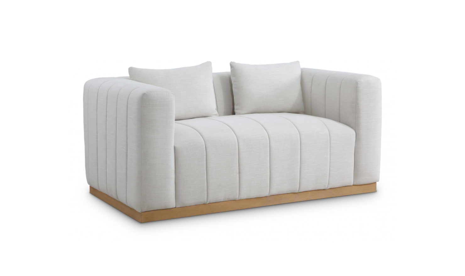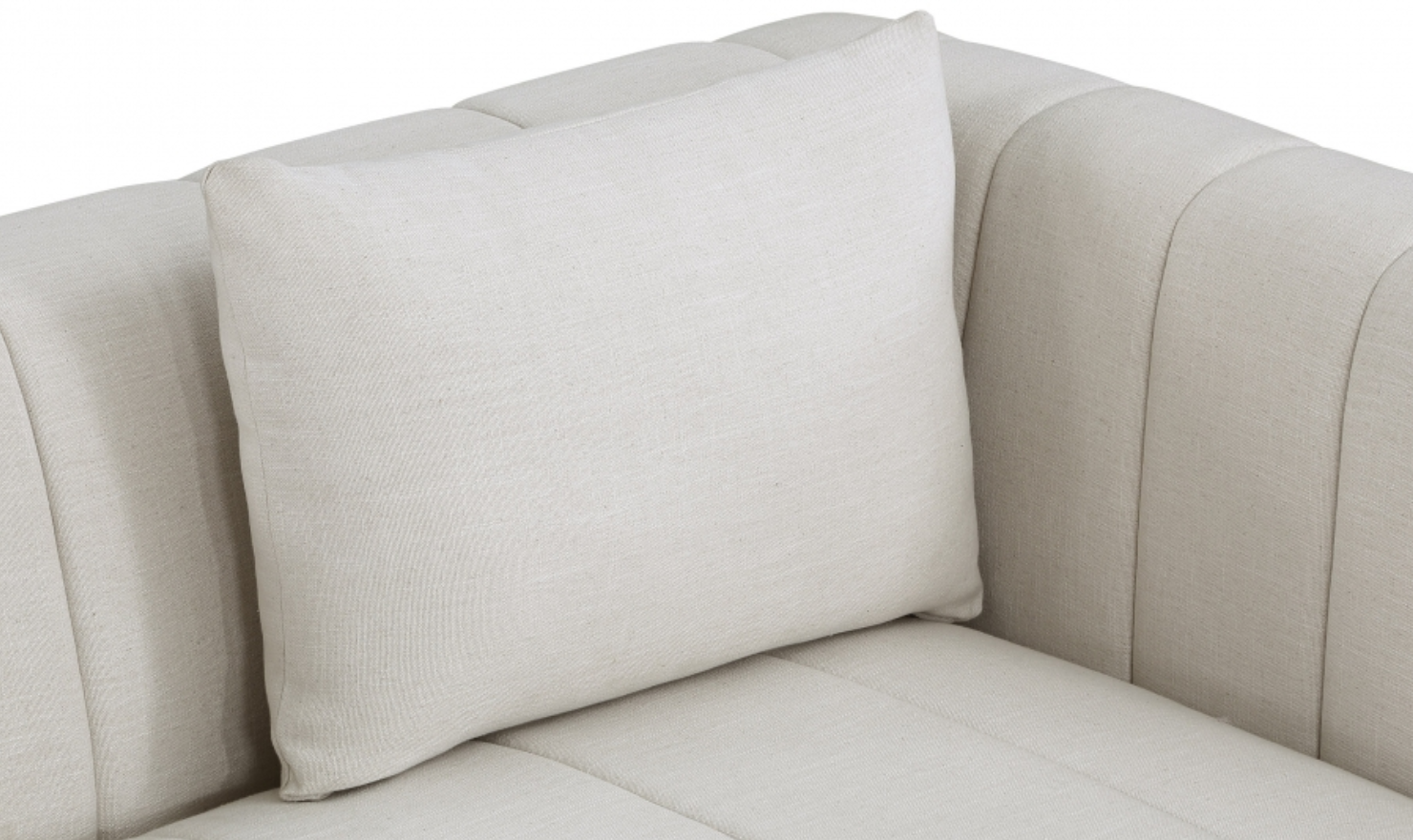 Indulge in the refined comfort of the Lucia Linen Textured Fabric Loveseat from Meridian Furniture. Generously sized for two, this oversized loveseat invites you to unwind with your favorite book or a steaming cup of tea. Upholstered in a soothing blend of cream, beige, and grey linen-textured fabric, it offers a soft, inviting feel against the skin. The plush back cushion and deep channel tufting ensure long-lasting comfort and structure, making it as durable as it is stylish.