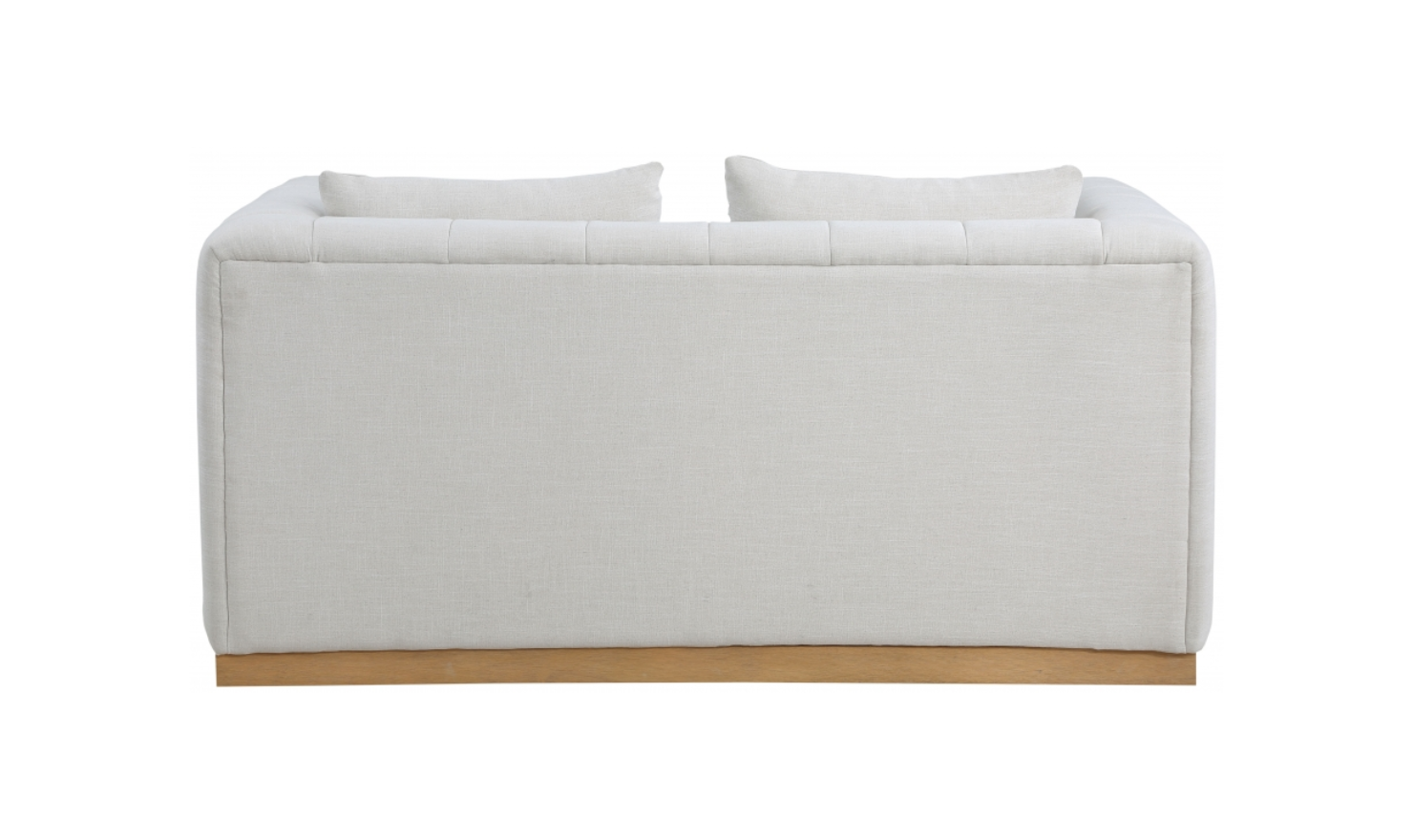 Resting on a contrasting solid wood base in a natural and black finish, the Lucia loveseat combines contemporary elegance with resilient craftsmanship. Its wide seat, supportive foam filling, and included pillows create a cozy yet sophisticated seating experience perfect for any living space. Designed for both residential and commercial use, this piece blends timeless style with everyday practicality.