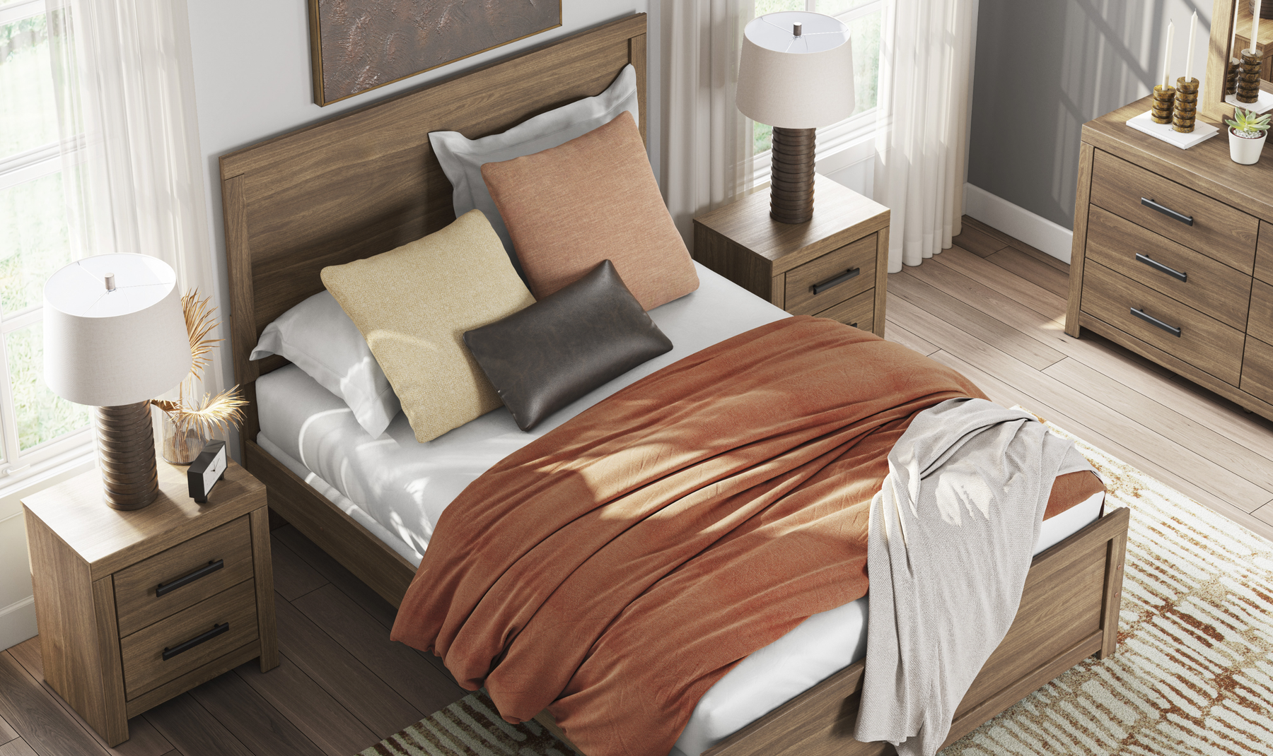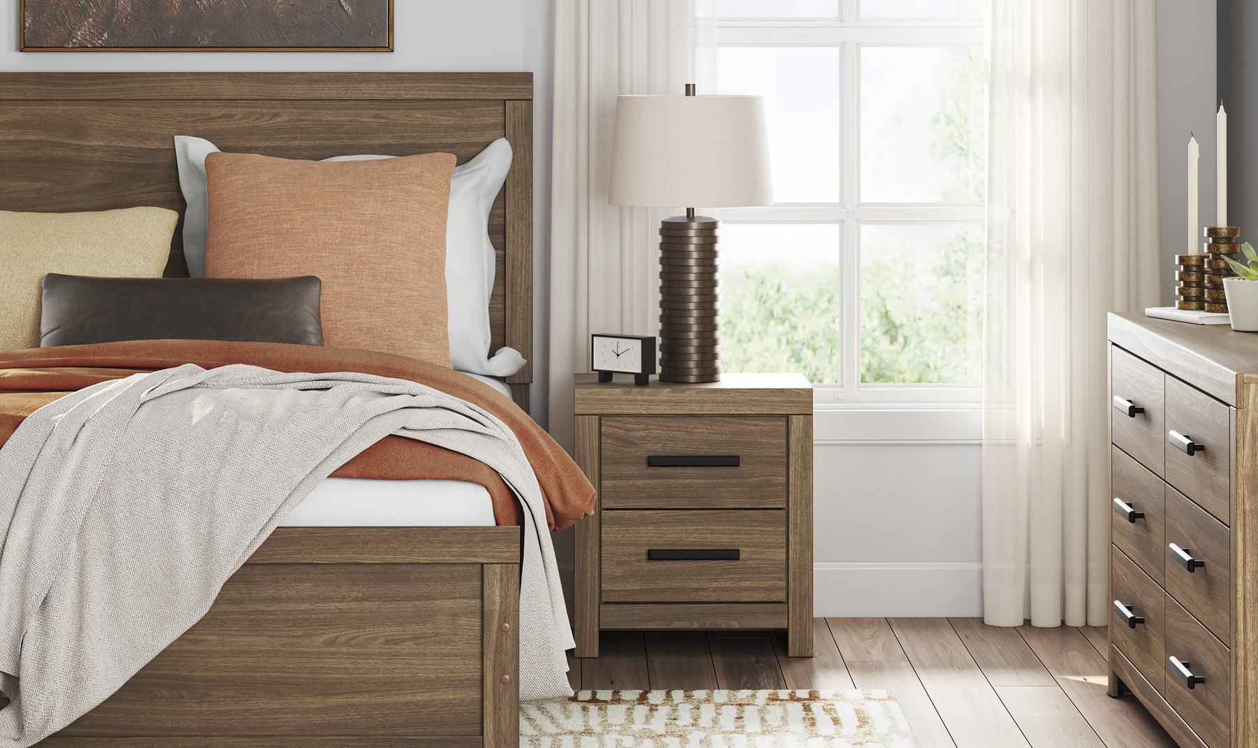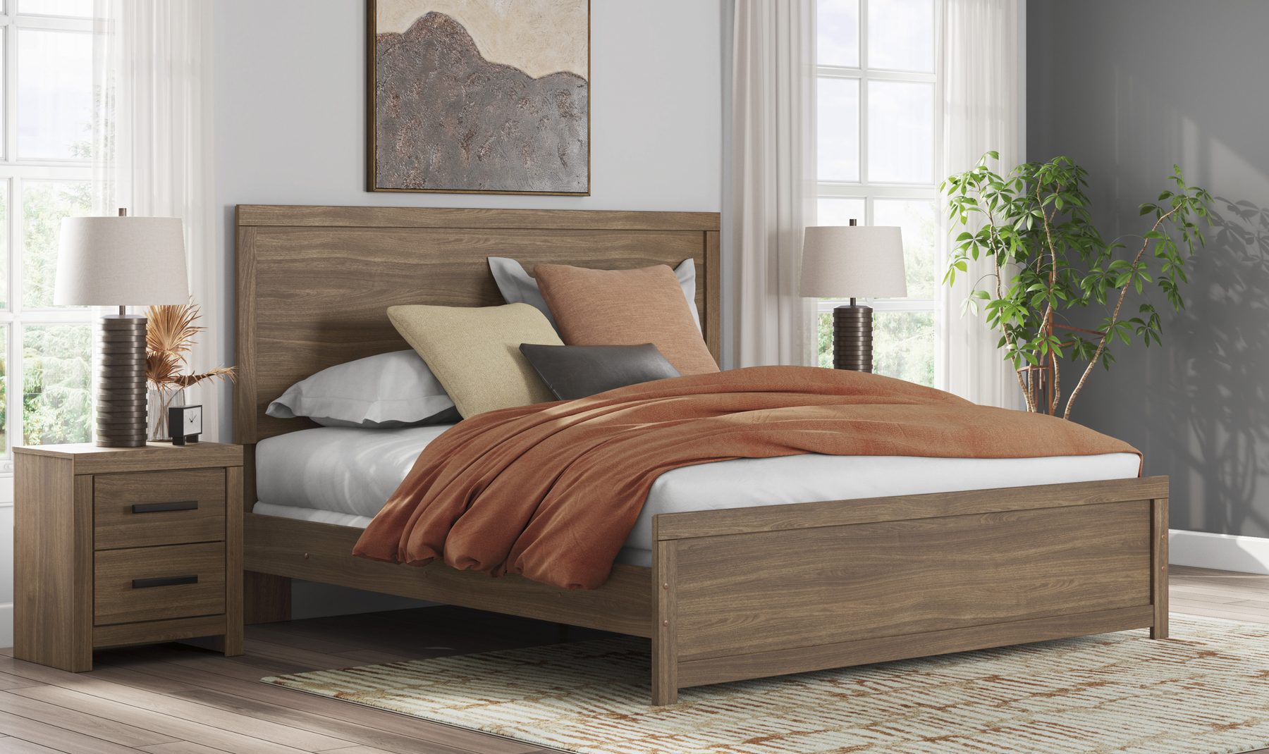 - Complete Bed Frame: Includes the coordinating panel headboard, footboard, and side rails for a unified look.