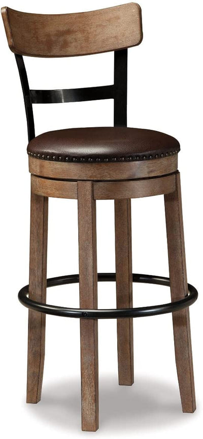 This striking bar stool serves a sense of refinement without all the formality. A 360-degree spin element keeps you in the flow of conversation, while faux leather upholstered seating incorporates comfort and easy cleanup. The frame’s signature finish with a wire-brushed effect and gray undertones exudes an easy, relaxed sensibility.