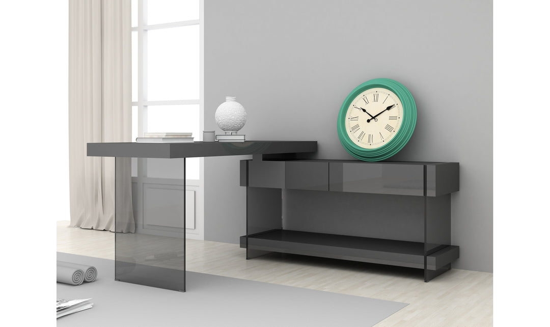 Patchwork 2-Drawer Modern Glass Desk with 360 Swivel Moment