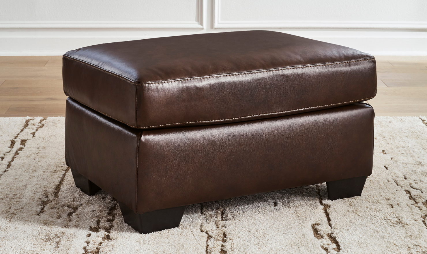 Elevate your living space with the Modern Heritage Santorini Ottoman, a stunning fusion of timeless elegance and modern design. Whether your aesthetic leans toward the clean simplicity of contemporary style or the rich, enduring appeal of classic decor, this ottoman offers the perfect blend of both worlds. Designed to be as functional as it is fashionable, the Santorini Ottoman brings luxurious comfort and versatile style to any room. Crafted with a sleek, clean-lined silhouette, this ottoman is upholstered with a thoughtfully curated combination of 100% top-grain leather on the cushion top and skillfully matched faux leather on the sides, delivering a refined look without compromising on value. The leather's natural origin means that each piece is inherently unique, showcasing authentic characteristics like healed scars, grain variation, and subtle shade differences. These distinctive features enhance the ottoman’s beauty and celebrate the individuality of every hide.
