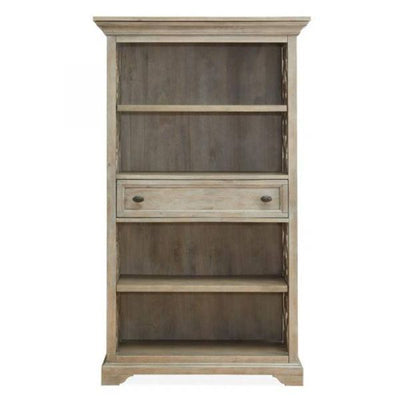Gustavian influenced Tinley Park home office creates charming ambiance in a soft Dove tail Grey finish. Sit to the perfect work setting at one of three desk options that feature weathered pine solid tops resting atop open scrollwork bases on the writing desk, a fresh take on the executive desk with open shelf storage at the bottom and matching hutch or select the unique counter height desk, fully appointed with letter bins and small drawers on the vintage inspired hutch. Use the fully upholstered swivel desk chair the handsome counter height desk chair for comfortable work seating while an open bookcase features the open scrolled fretwork on the sides for gracious working away from work.