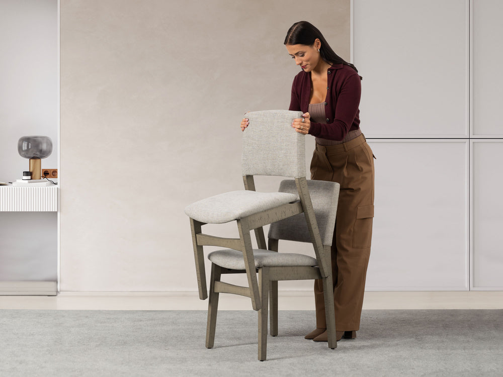 Crafted from high-quality wood and highly resistant waterproof fabric, these dining chairs are built to last. Their sturdy construction ensures their durability and reliability over time, making our stackable, dining chairs an excellent choice for those seeking long-term value. Best of all, their solid wood frame offers a classic yet modern design, while their stackability makes these dining chairs ideal for spaces that need flexible seating arrangements.