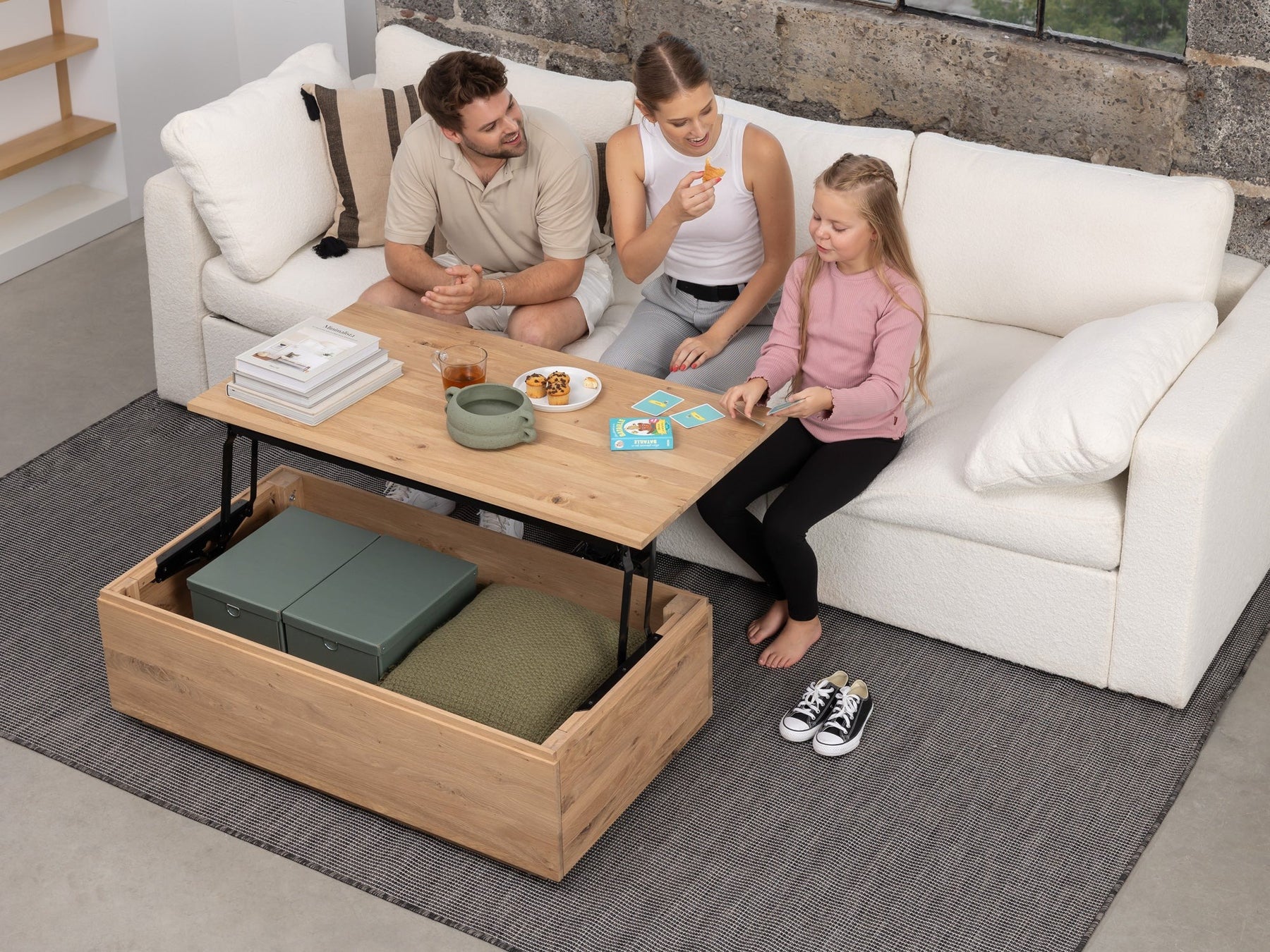 Crafted from high-quality wood, the Transformer Coffee Table is built to last. Its durable construction ensures years of use while maintaining its beauty. The lift-top design offers easy access to your stored items, keeping your living room organized and clutter-free. Whether you're enjoying a meal or relaxing with a drink, this table provides the perfect balance of comfort and convenience.