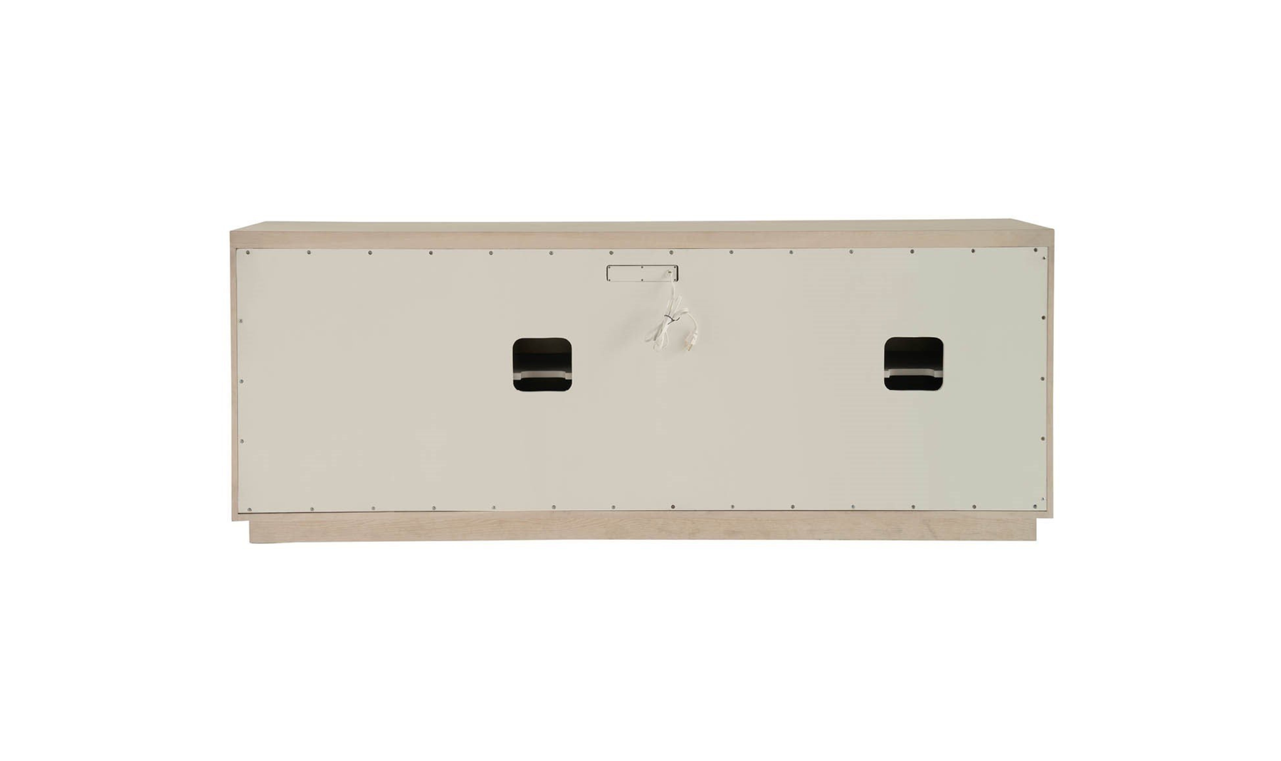 Behind its three touch-latch doors are two adjustable shelves and a built-in power bar, ideal for organizing electronics or concealing everyday items. Additional thoughtful touches include rear cutouts for wire management, adjustable levelers for stability, and a tip kit for added safety. This credenza balances visual interest with everyday utility, making it a versatile piece for living rooms, dining spaces, or entryways.