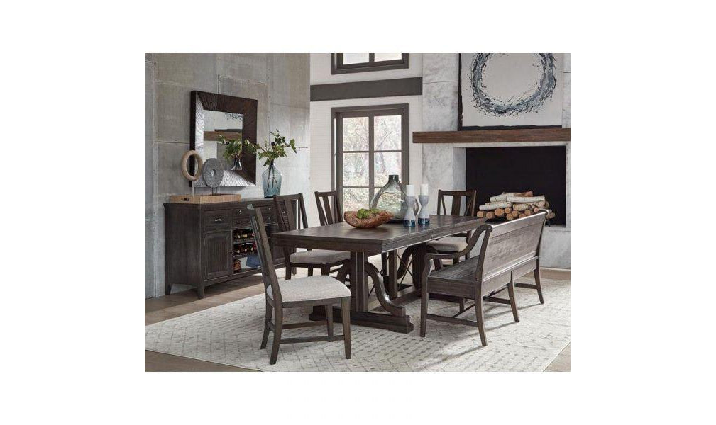 Destined to the be star of your dining room, the Westley Falls collection features thoughtfully designed pieces for modern lifestyles. Whether it is pizza night or a holiday celebration, these well designed dining essentials make serving and entertaining easier. Dining pieces in the Westley Falls collection wear a trend forward Graphite finish with Aged Pewter metal accents and feature raised beaded trim, framed-panel elements and straight, shaker inspired legs.